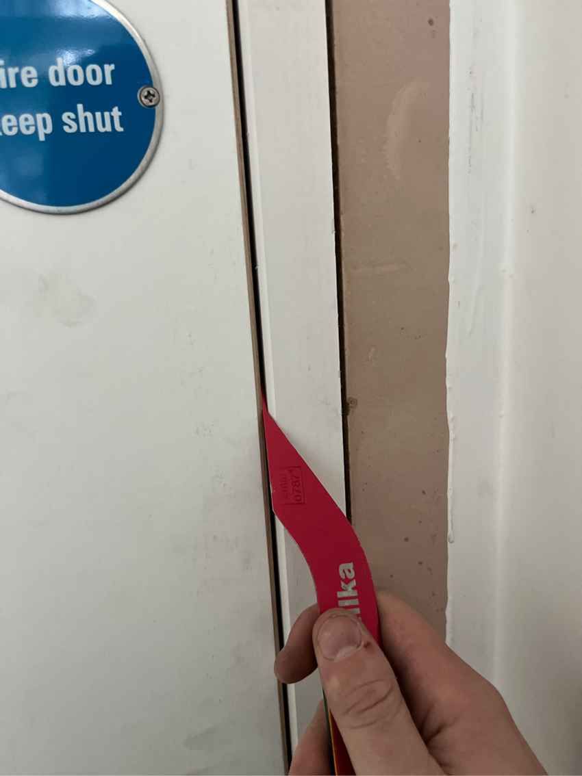 An inherent problem with this building is the falls on the floor, which could directly impact the certification of the fire door installation as threshold tolerances would not be met on installation. For our team of operatives this isn’t an issue, as well as being skilled fire door installers our general build and joinery knowledge, means that we have the capabilities in house to screed the floors to the appropriate heights, ensuring the fire doors are fully compliant upon installation.